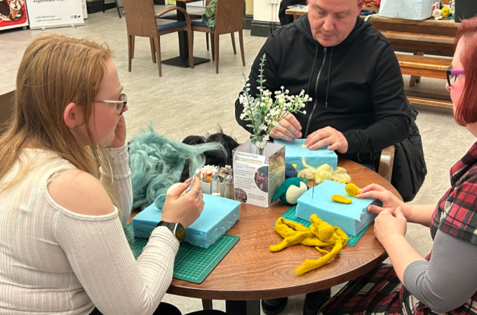 There’s something wonderfully comforting about sitting a room full of people quietly chatting, while rhythmically stabbing wool with tiny barbed needles. At least, that’s the…